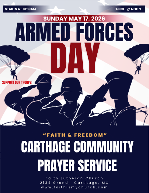 Faith Lutheran Church is deeply rooted in Carthage and the wider 417 area. We believe our faith calls us to active service, making a real impact on the lives of our neighbors. Join a church that truly cares and is involved in its community.